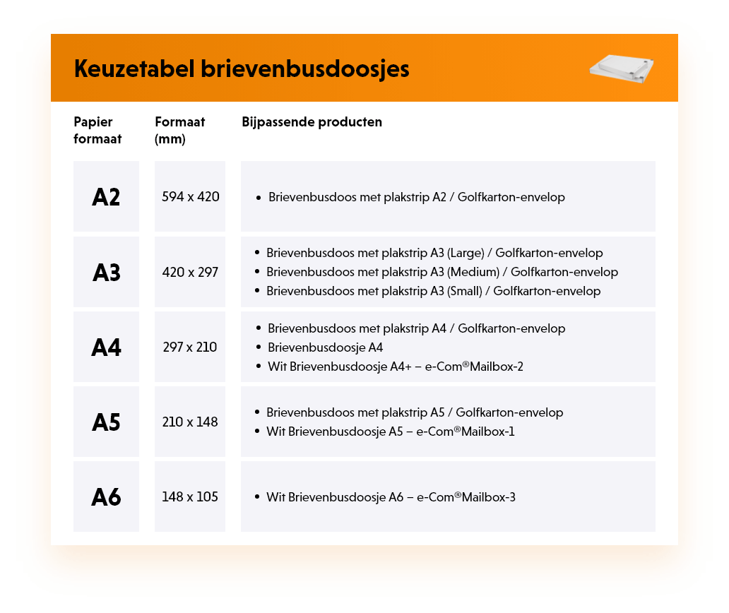 Onze A4-brievenbusdoos is het meest verkochte formaat. Dit dankzij de ruime toepassingsmogelijkheden en de veelzijdigheid.