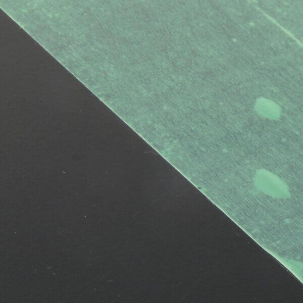 De kleur is groen transparant, het is dus doorzichtig en lichtdoorlatend.